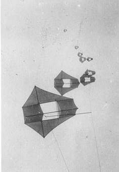 FIGURES: Batut, his first aerial photograph taken over Labruguiere, France, and his kite with camera mounted in the middle.